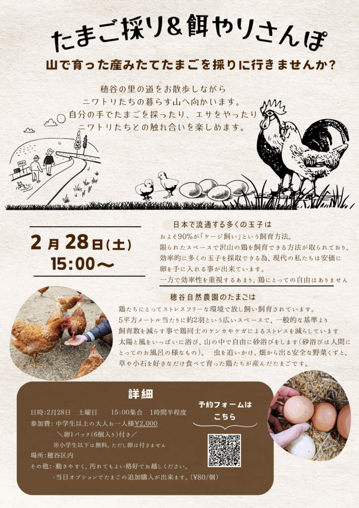 鶏が好きな方、山が好きな方、どんなところで鶏たちが過ごしているのか見てみたい方、ぜひぜひご参加お待ちしております★